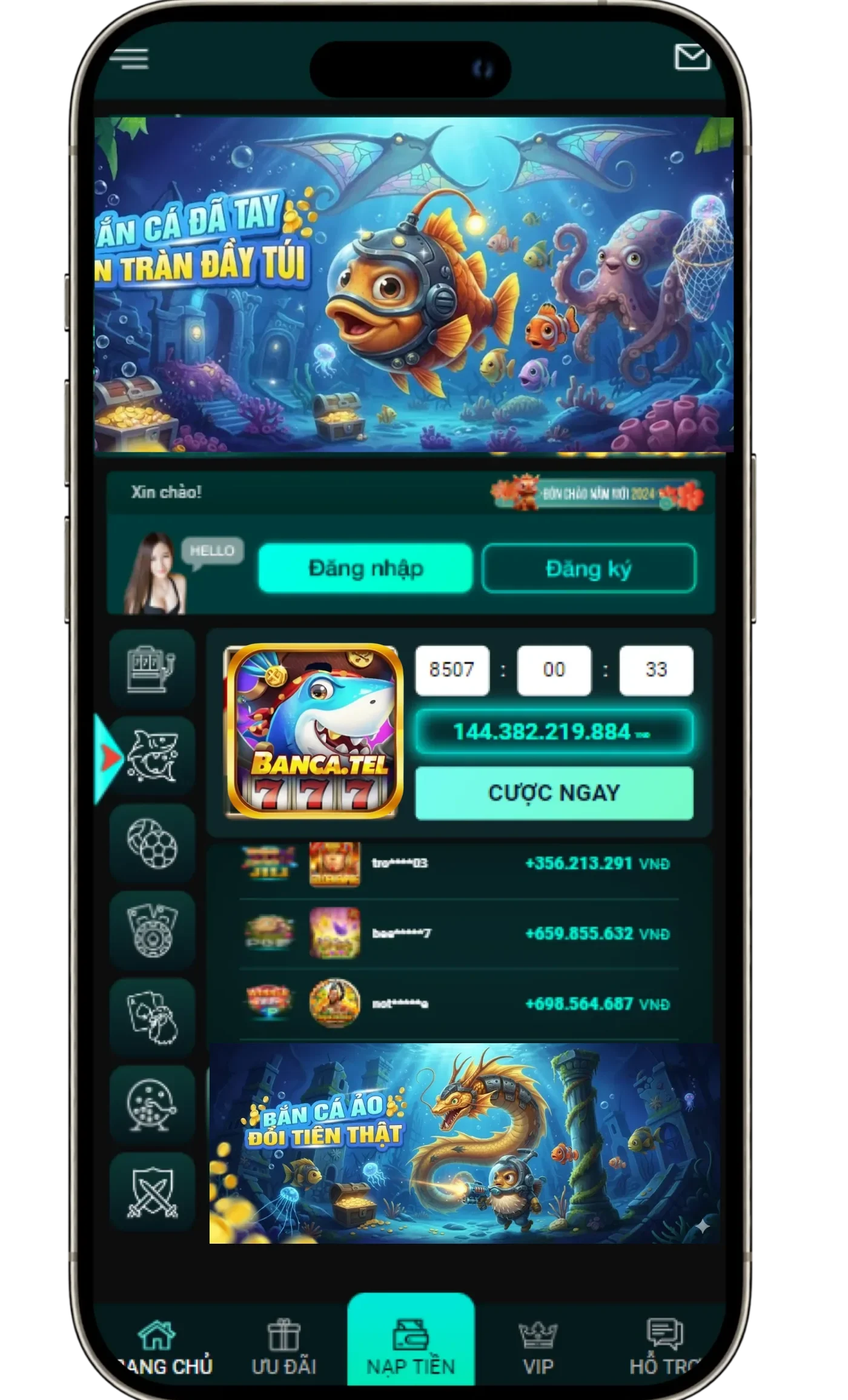 Đăng nhập và chơi bắn cá nhận lì xì ngẫu nhiên